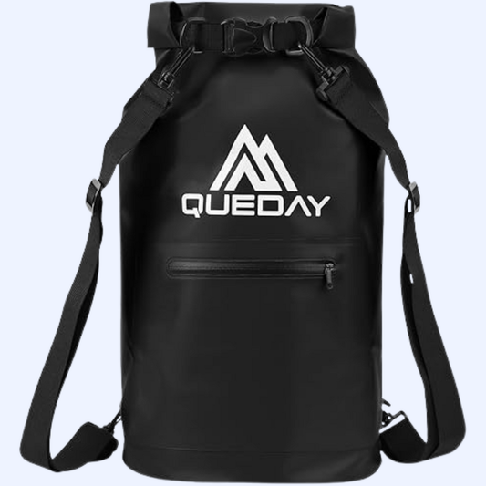 Queday Waterproof Roll Top Dry Bag | 10 Liter | Black | Zippered Front Pocket