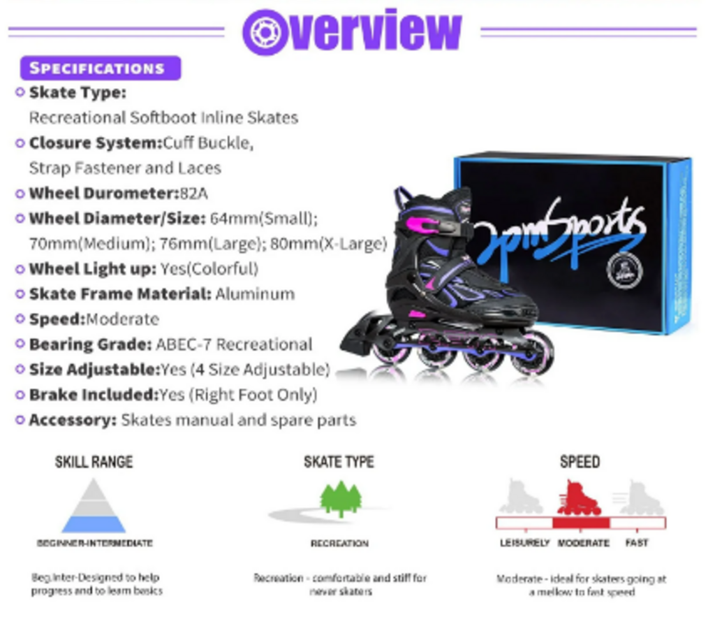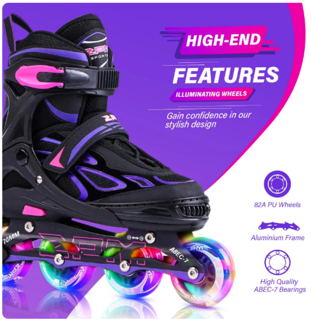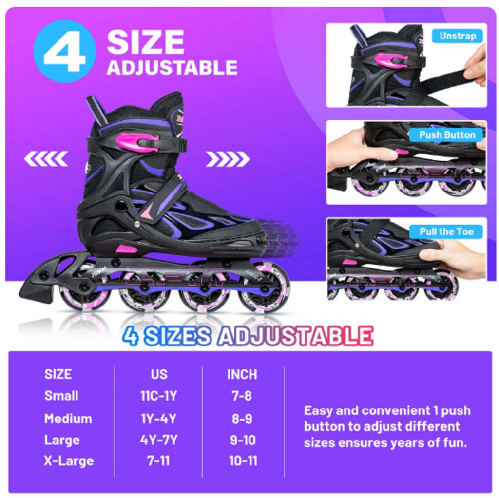 2PM Sports Vinal Kids Adjustable Inline Skates, Sizes 1-4