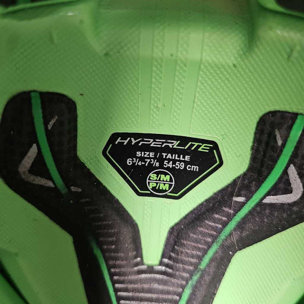 Helmets certification stickers removed but is certified through 2028. Clear plastic ear pieces have also been removed. Helmet padding and in great shape!