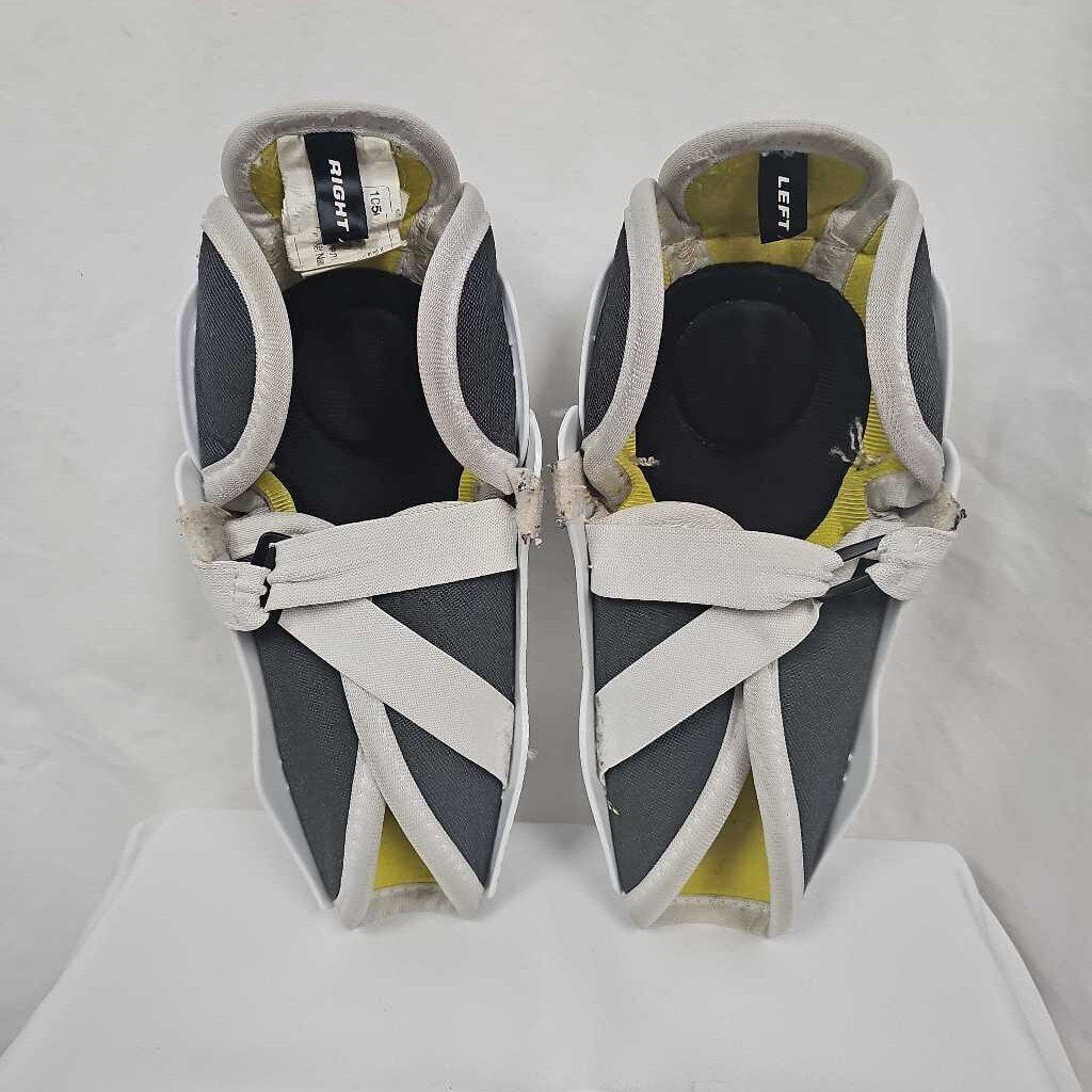 Shin guards show signs of use.