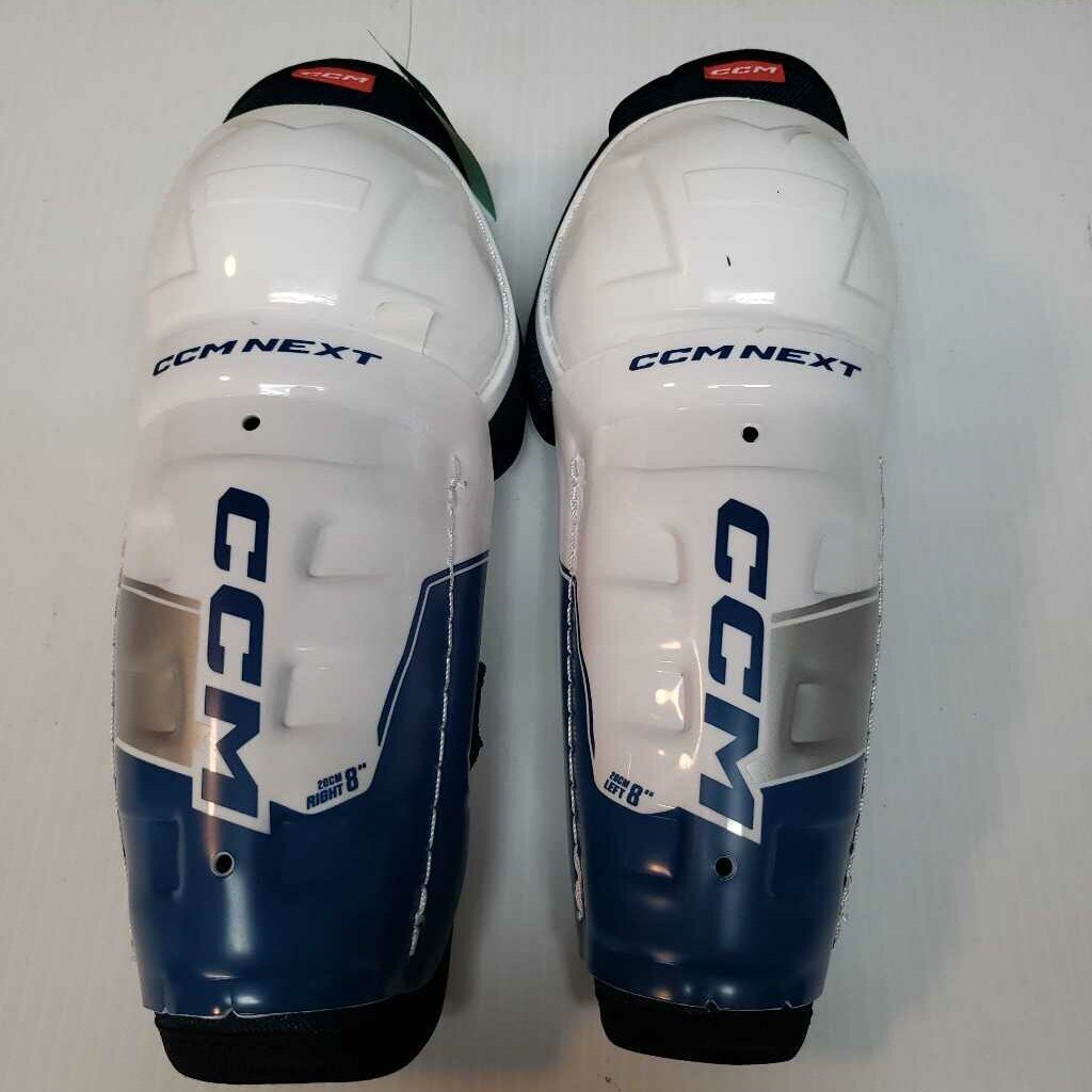 CCM NEXT Hockey Shinguards White/Blue Youth Size 8"