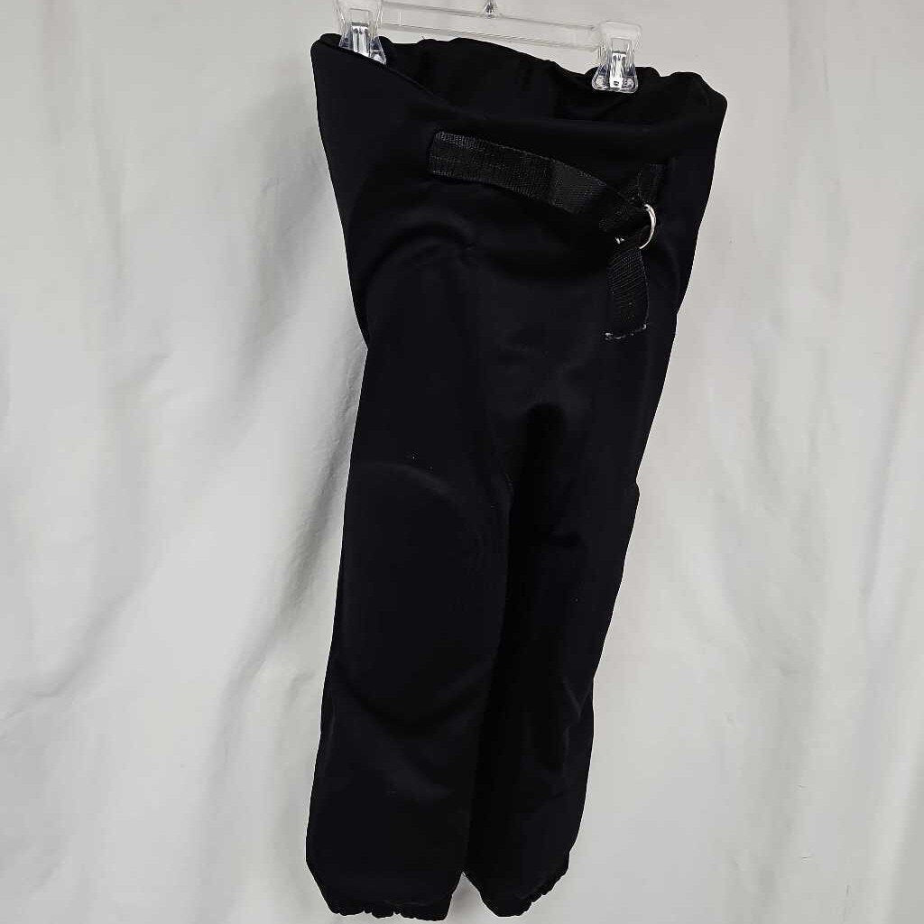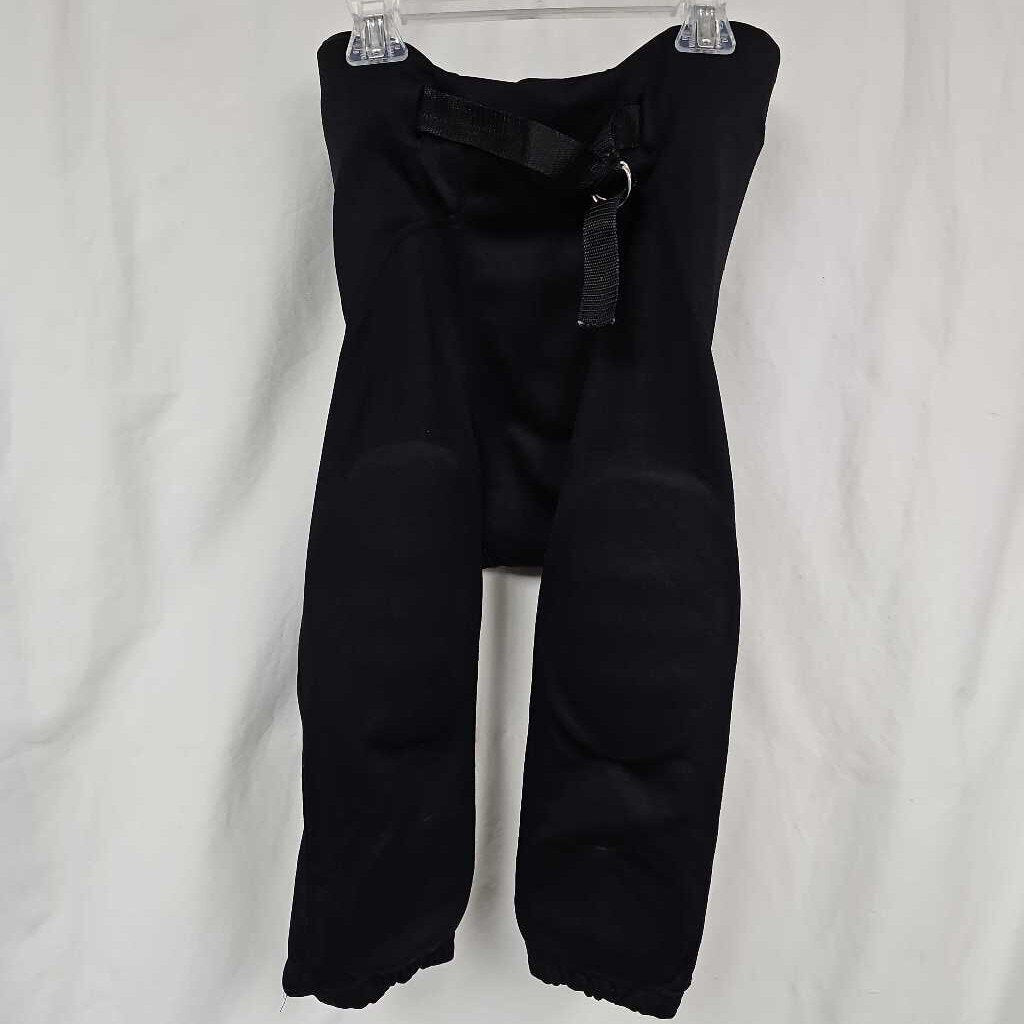 Description: Black. 100% polyester Dyno-Stretch double knit fabric. Hassle-free, factory installed, sewn-in pads provide traditional protection. Built-in, full-length covered web belt with "no-fly" duke crotch. Safety Integrated Football Pants with Built-In Pads (7-Pads) Machine washable.