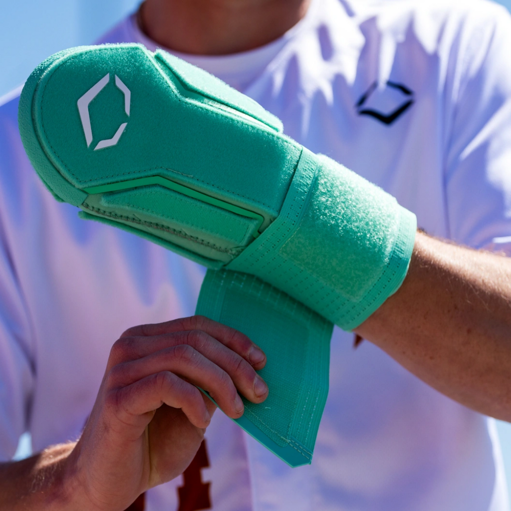 Get the edge on the base paths with the Sliding Mitt 2.0, EvoShield’s perfect accessory for swiping bags while keeping your hands protected. Protective plates in the mitt insulate the top and underside of the hand while updated channels along the palm and backhand improve finger dexterity to securely grip the base. Updated with a rubber bumper along the top, the Sliding Mitt 2.0 protects fingertips when jammed up against the base. The universal design is compatible with the left hand or the right hand, and an elastic compression strap keeps the mitt in place while racking up stolen bases.