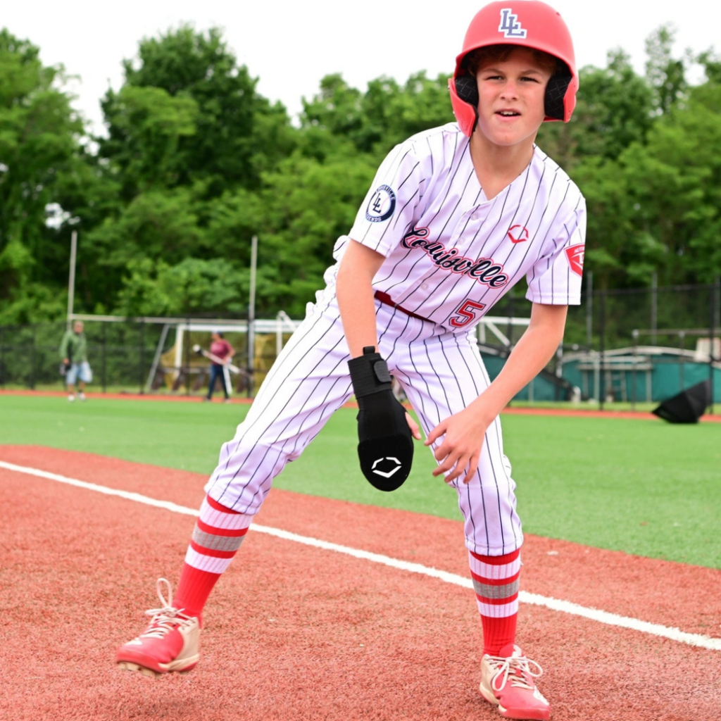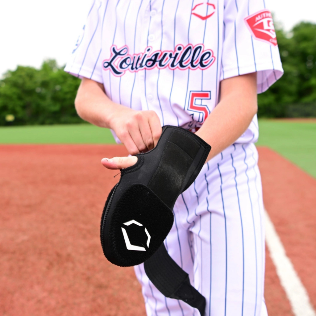 Don't get sidelined swiping bags. The EvoShield Youth Sliding Mitt is designed to protect young player’s hands on the base paths as they rack up stolen bases. Protective plates on the top and underside of your hand safeguard against spikes and jammed fingers, and protective stabilization strips secure your wrist. An elastic compression straps to keep the mitt in place as you’re rounding the base paths, keeping your lead hand safe on game-changing slides. The youth sliding mitt is recommended for players under the age of 12.