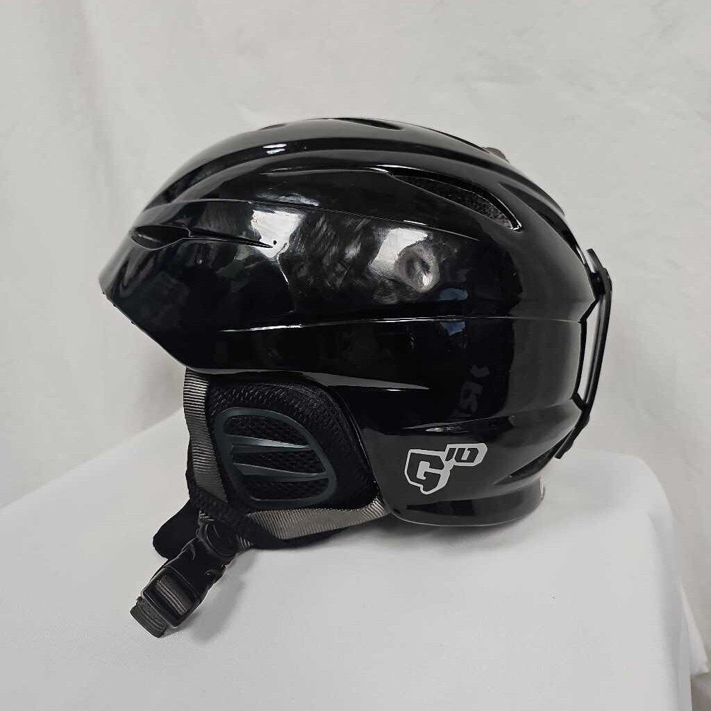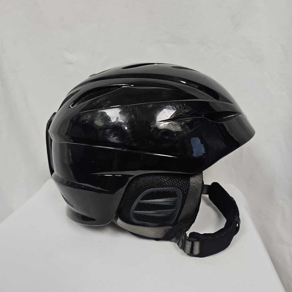 Fits head size 60.5-62.5cm. Black gloss finish. Slide button venting system. Helmet has scuffs from use but in very good condition.