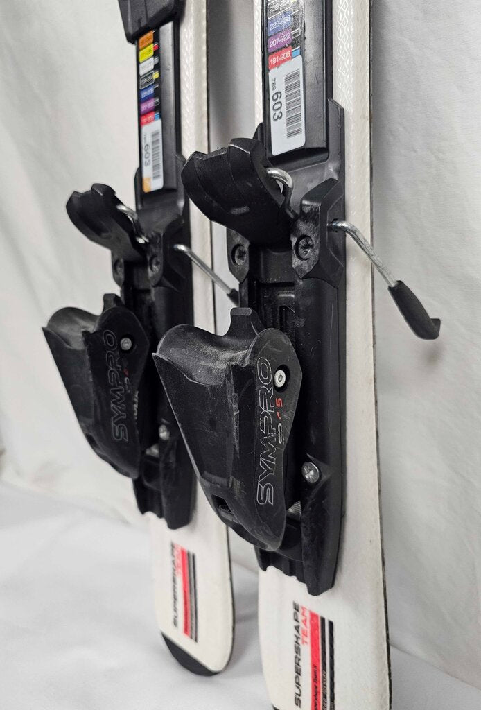 Pre-owned Head Supershape Team Era 2.0 ski, perfect for getting your little one out on the bunny hill. Comes with Tyrolia Sympro SP4.5 bindings