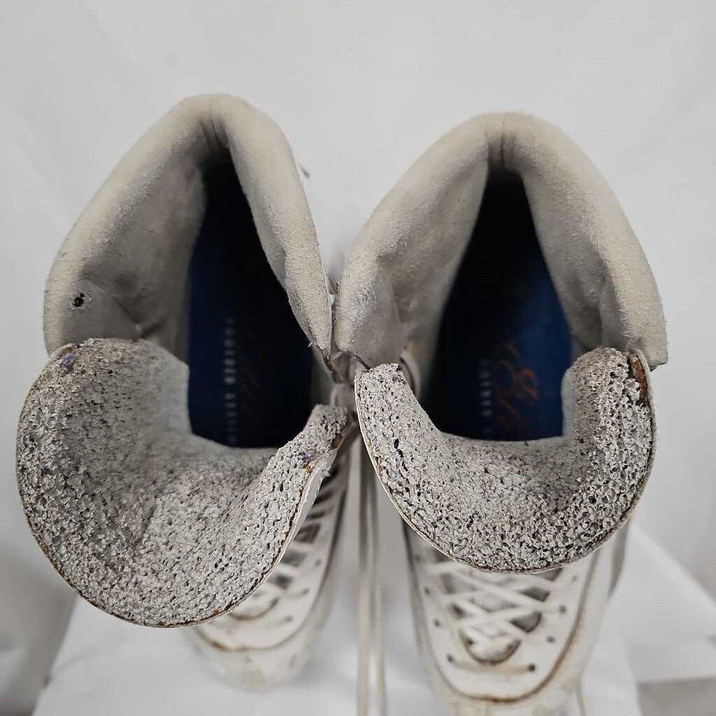 Jackson Elite boots with custom 3000 series sponge tongue and Jackson Ultima Mirage blades attached. Skates show signs of use but still have life in them!