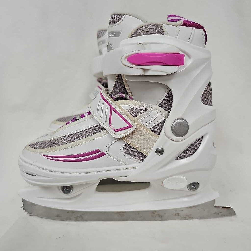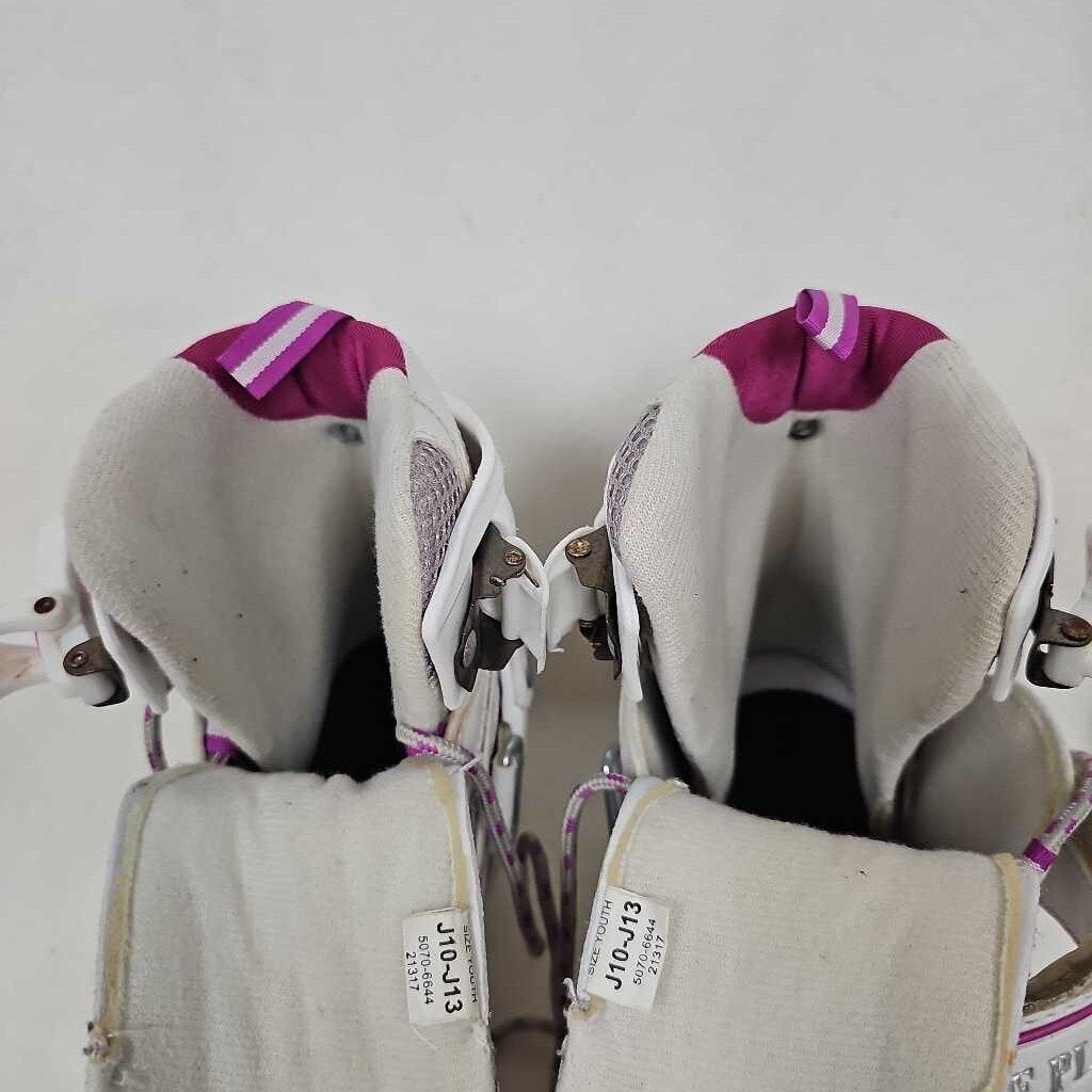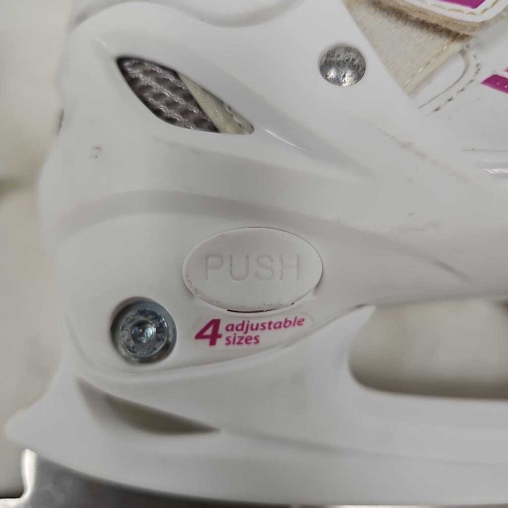 Extendable sizes Y10, Y11, Y12, Y13. White & Pink, Toe pick on front of blade.