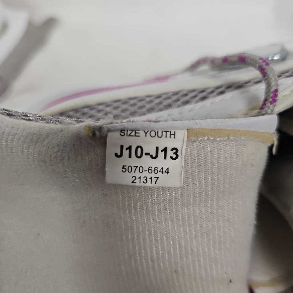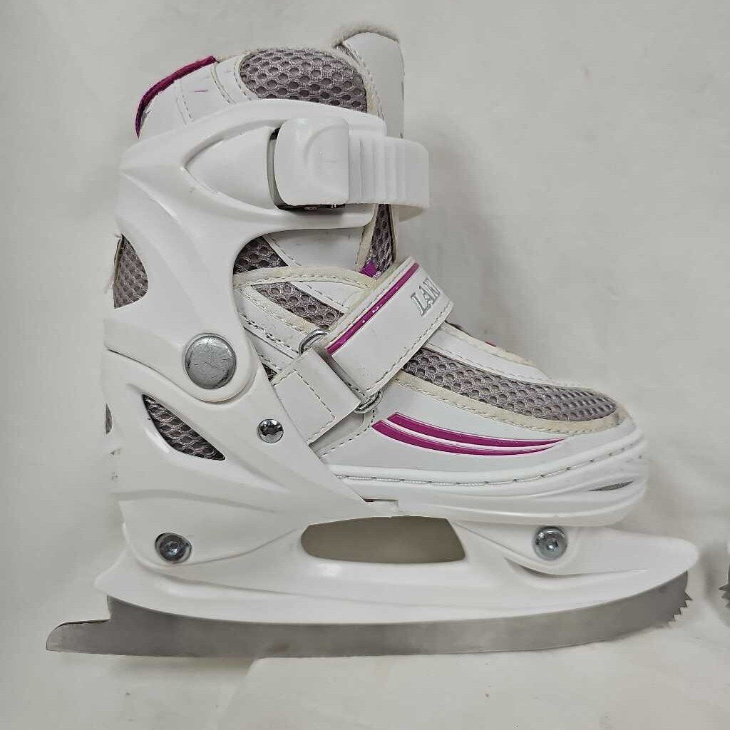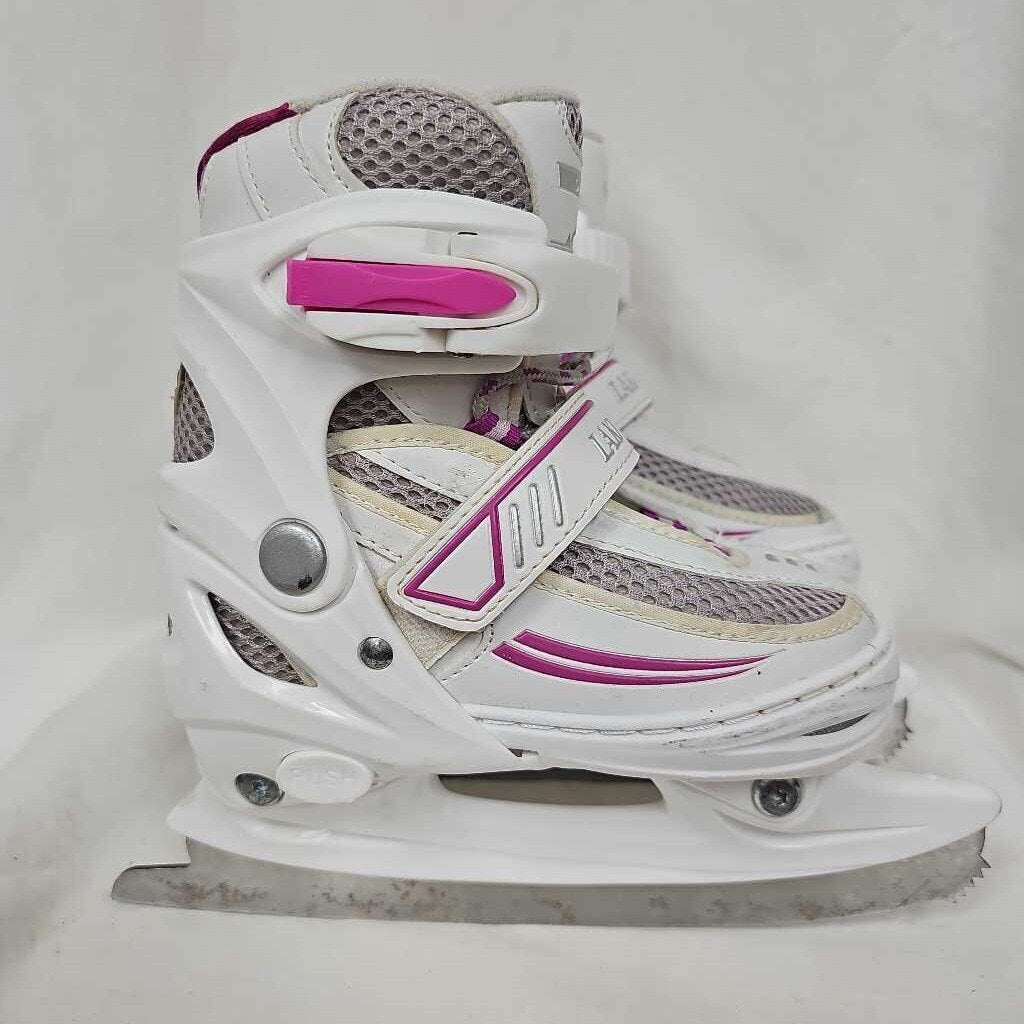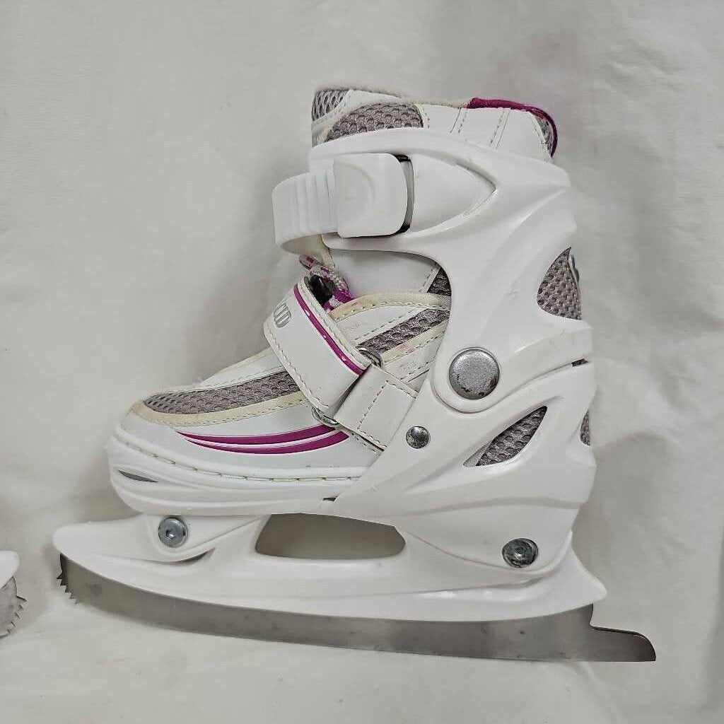 Extendable sizes Y10, Y11, Y12, Y13. White & Pink, Toe pick on front of blade.