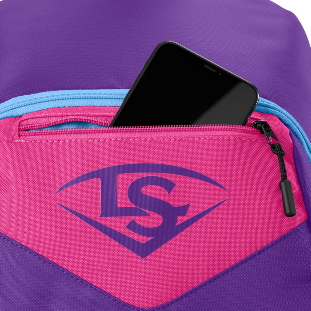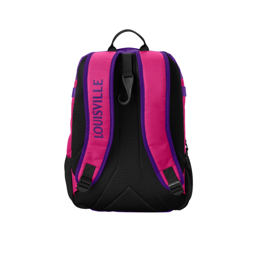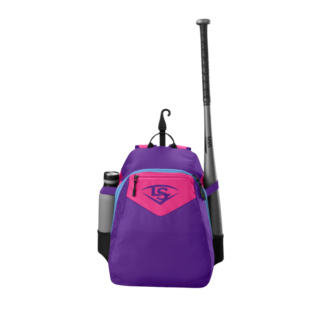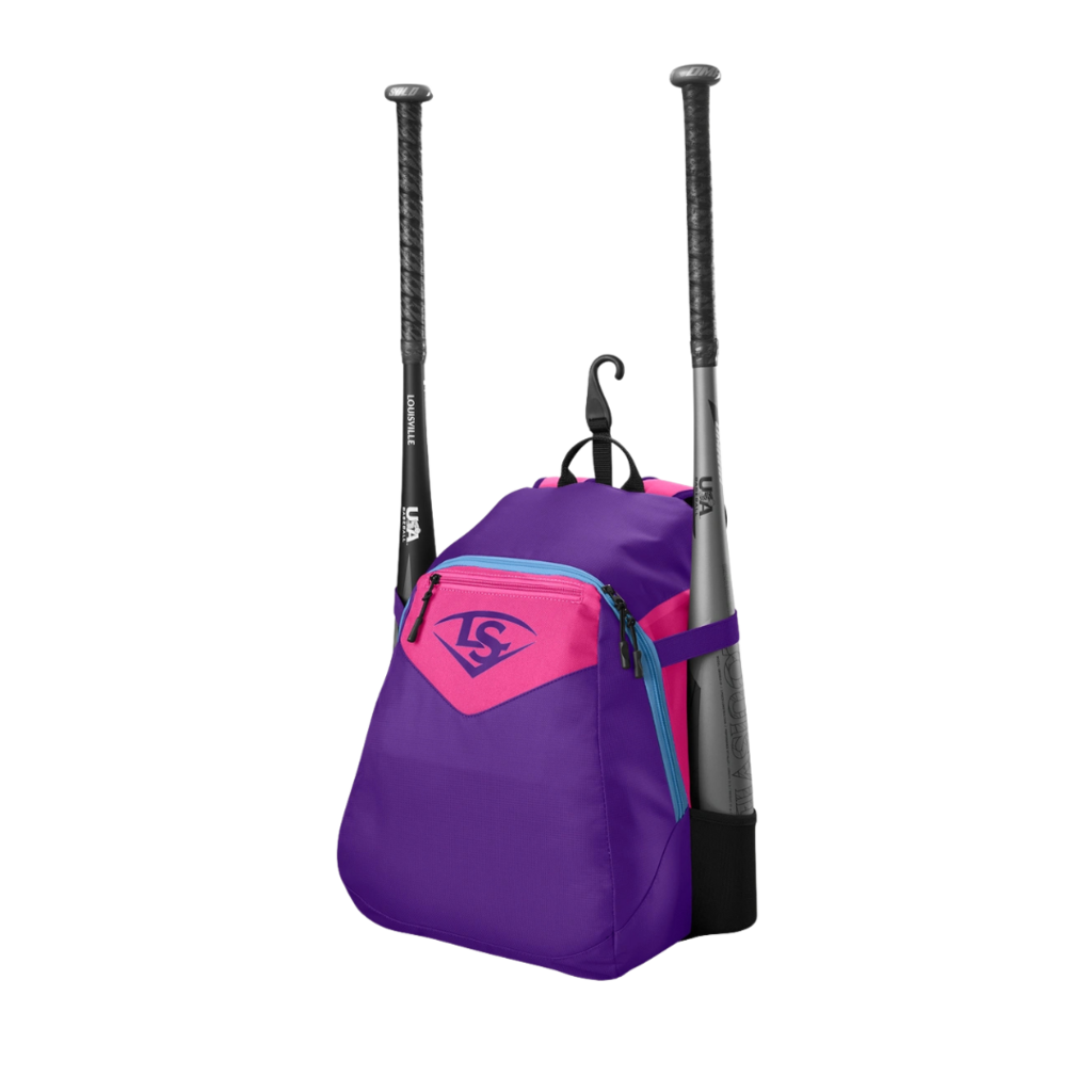 Equip your young ball player with the perfect backpack to store and haul their practice and game day gear. The Genuine V2 Stick Pack from Louisville Slugger features a generous main compartment to stash a youth helmet, fielding glove and cleats, and two mesh bat sleeves on the sides can carry bats or water bottles. Foam padded shoulder straps help young players take their game on the road, and an integrated fence hook allows for easy storage in the dugout.