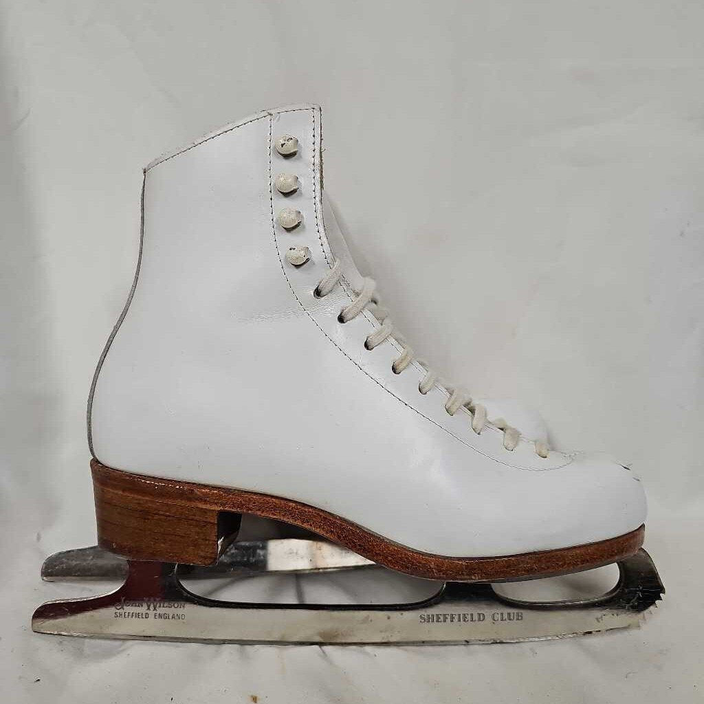 Leather Boot, Pressed wood soles, Sponge tongue, Punched eyelets, John Wilson Sheffield Club steel blades