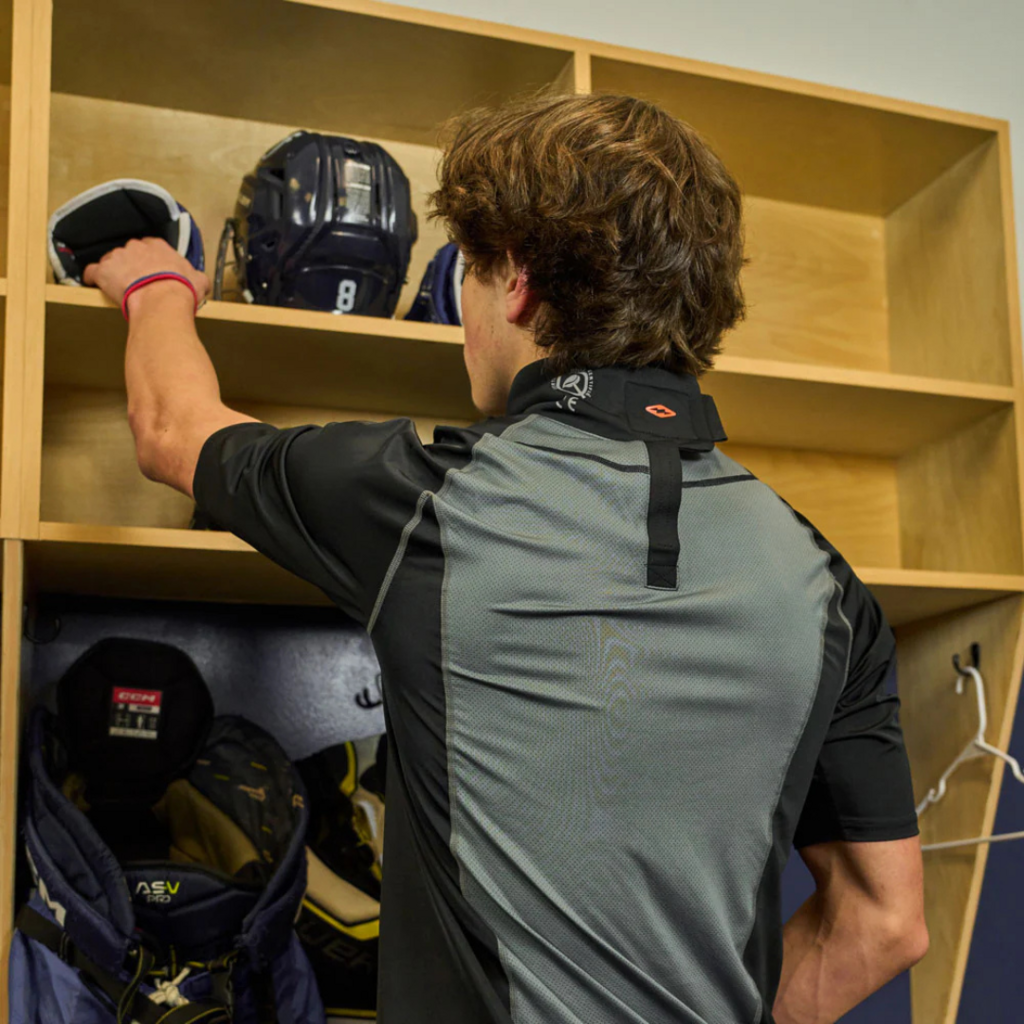 The Shock Doctor Men's/Boys' Ultra Compression Hockey Short Sleeve Shirt with Integrated Neck Guard delivers advanced performance to keep you protected on the ice. Four-way stretch compression provides a supportive fit, and cut-resistant material provides maximum protection. The bio-shape design naturally matches the curve and shape of the athlete, and silicone grip on the forearm helps hold elbow pads in place. BNQ & CE certified.