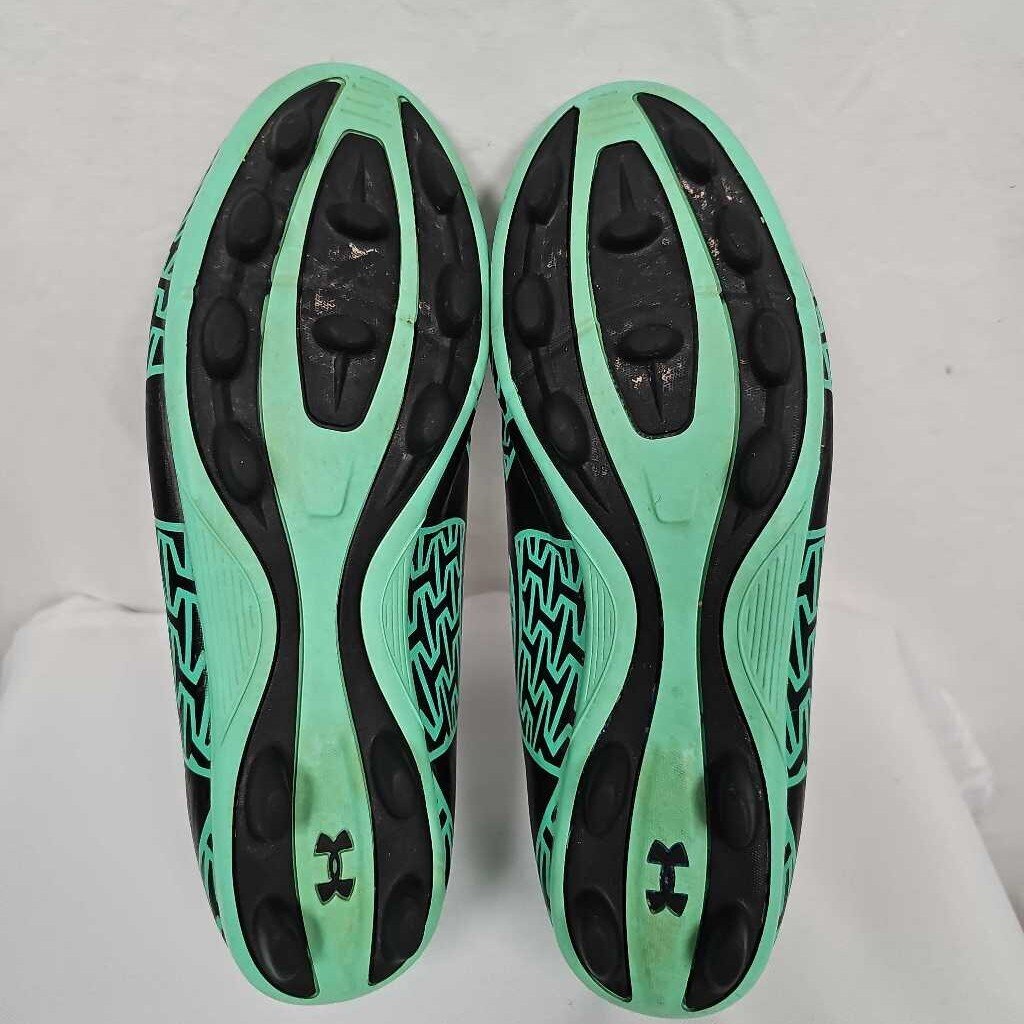 Green and black color pattern. Firm ground cleats. Cleats in good condition.
