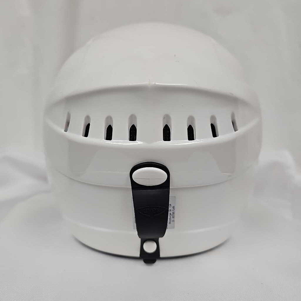 57-58cm head circumference. White. Air flow technology, adjustable hearing system, forehead vents and goggles strap retainer. Inner shell is made from shock absorbing EPS for all safety standards. Accepts Uvex chinguard.